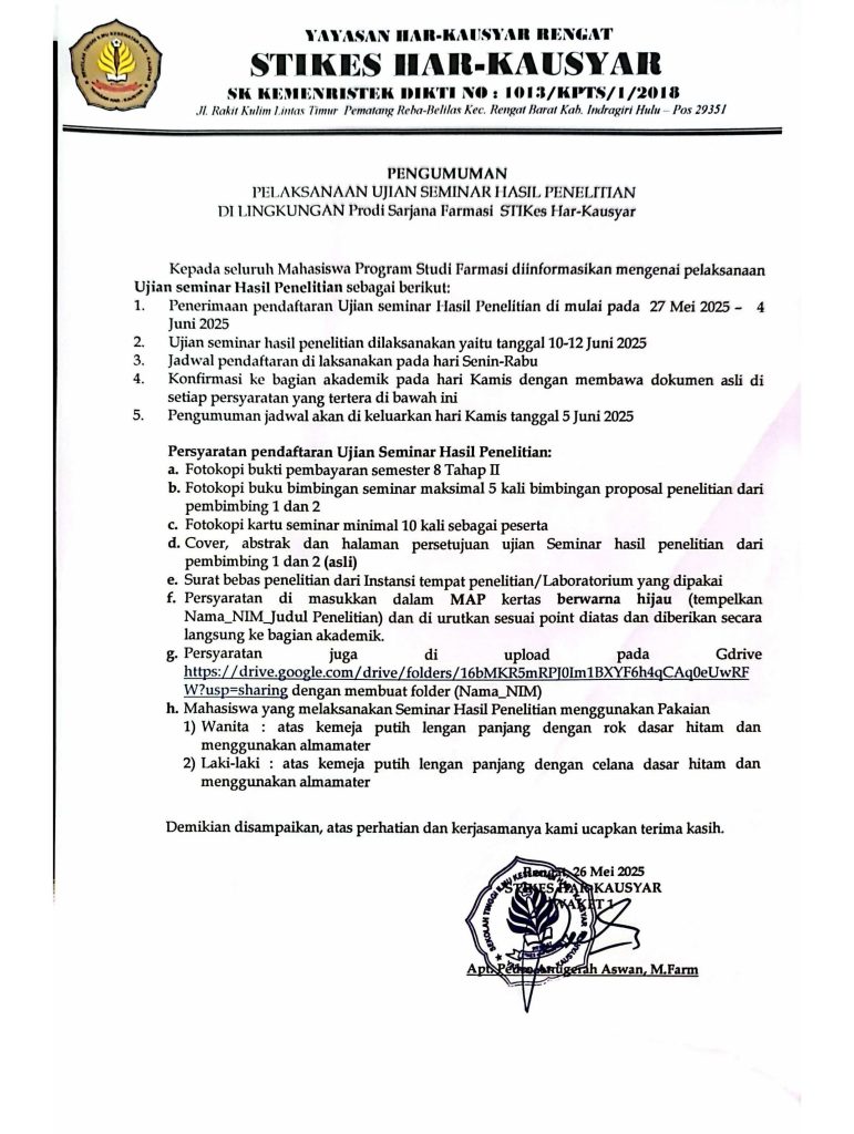Rengat, 31 Juli 2024, Sekolah Tinggi Ilmu Kesehatan Har-Kausyar menggelar…
